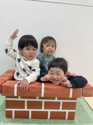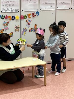 おおきなかぶの手袋シアターでは「うんとこしょ どっこいしょ」と一緒にひっぱったよ。